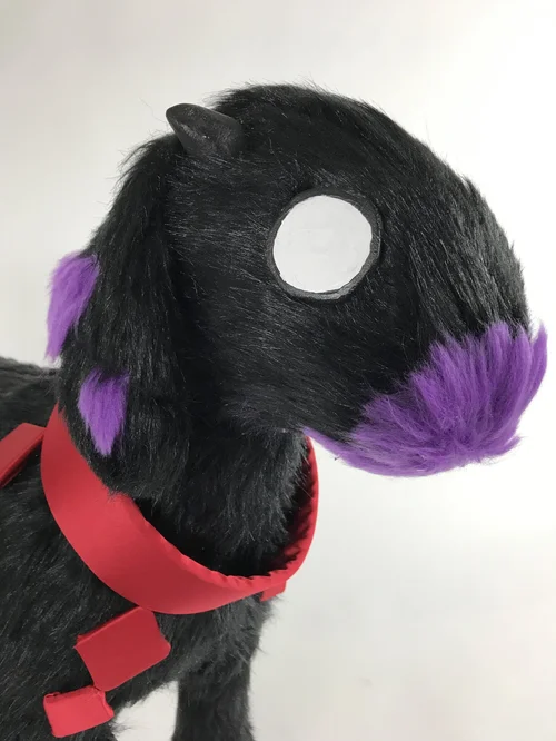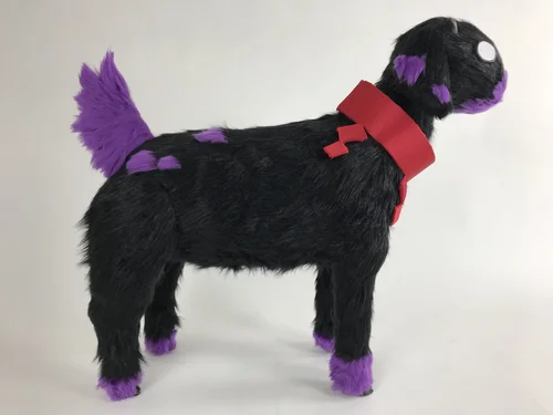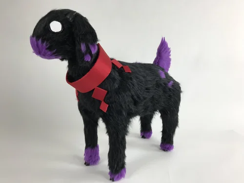 Mixed media Sculpture of Reboo’s goat guide, Dominic. Made with an wire/wooden armature, insulation foam, paper clay for details, and a hand sewn fur covering. Featured as a part of my 2019 BFA show.